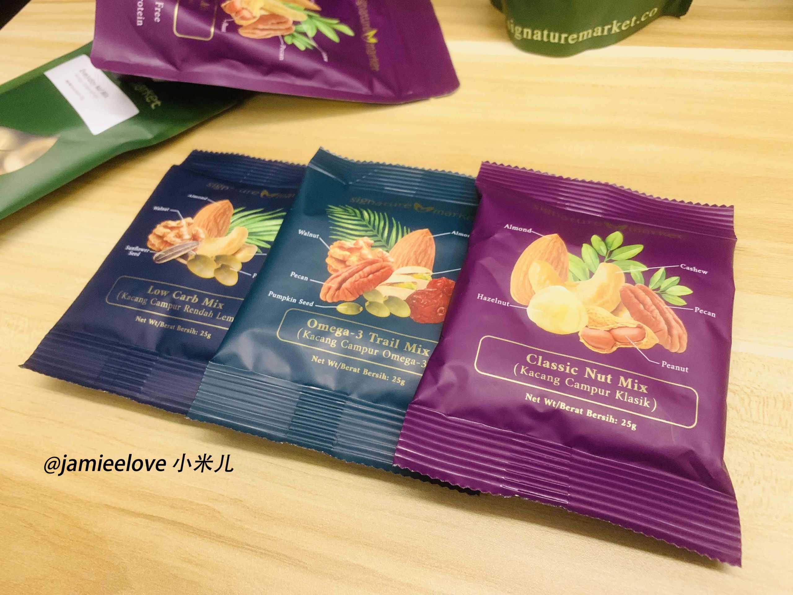 话说就在上个月我妹妹悄悄地网购了一整箱的 Signature Market 食品给我,收到时真的是心里暖暖的好开心。有妹妹真幸福啊!就像下面看到的这样,满满的一箱,包含了不同品类的产品-有有机豆奶粉,各种坚果,姜粉,小零食等等…